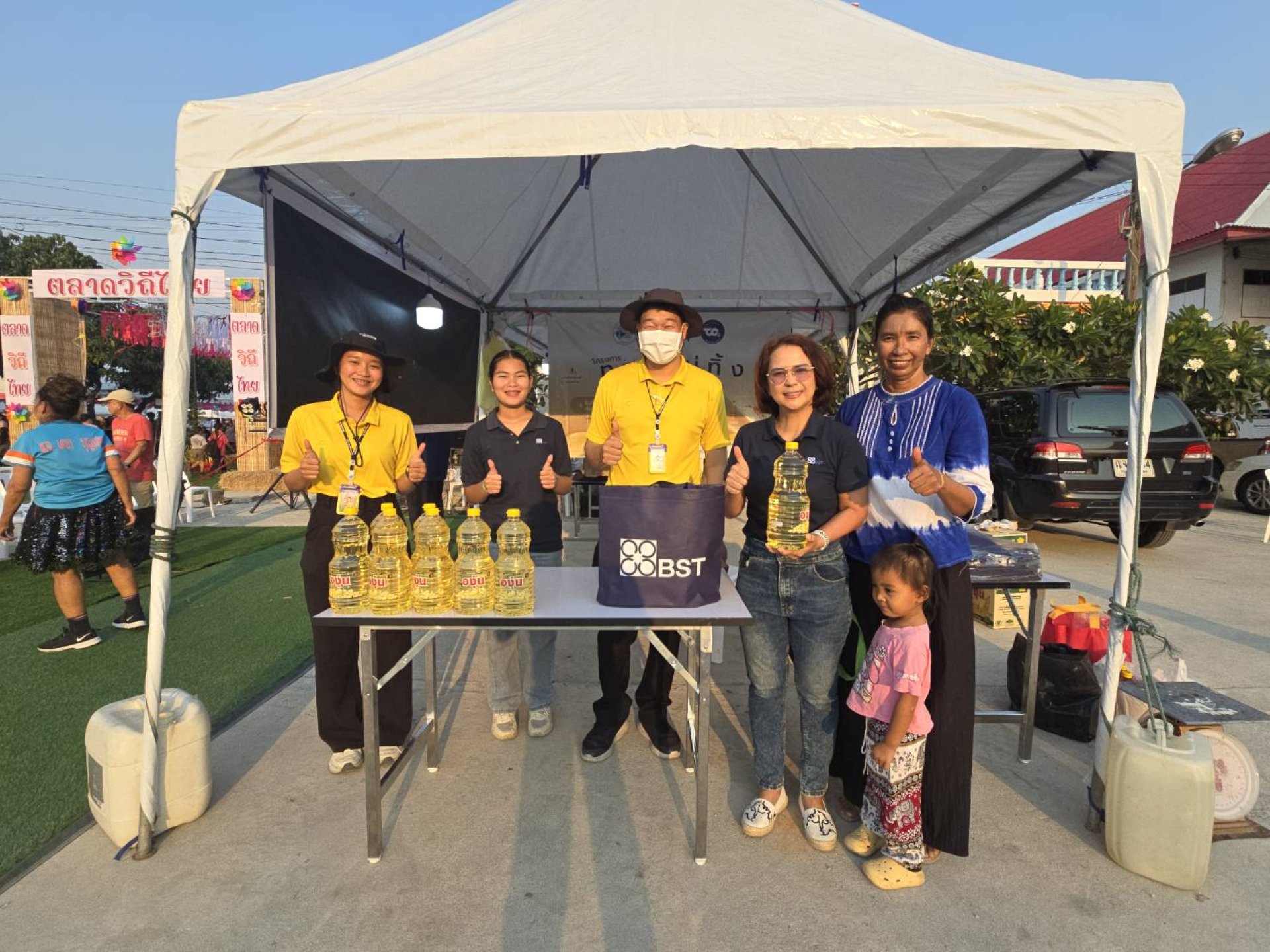 On February 13, 2025, Bangkok Synthetics Co., Ltd. (BST) participated in the "Thai Way Market" event for the second time this year at Wat Huai Pong, Huai Pong Subdistrict, Mueang Rayong District, Rayong Province. BST set up a booth to purchase used cooking oil from local businesses and community members, collecting a total of 494.5 kilograms of used oil, which was converted into 9,890 THB returned to the community.